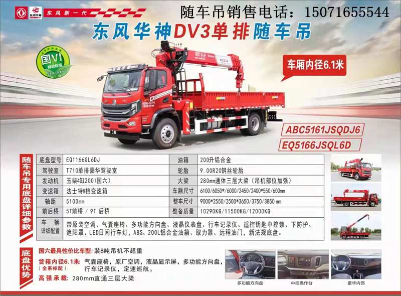 東風華神DV3程力隨車8噸5節臂隨車吊基本配置: