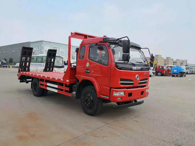 隨著國家對道路運輸的超載超限現象的嚴管。很多地方對平板拖車超載現象說“不”。這不,來自湖南張家界的莫姓小伙來我公司訂車了。下面為大家介紹一款:東風福瑞卡平板運輸車,核載8T,拉80挖機不超載的平板拖車。