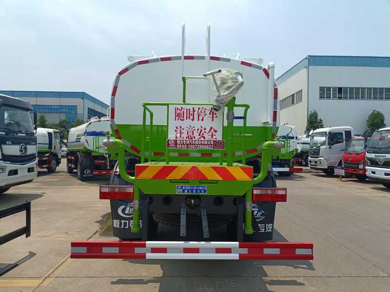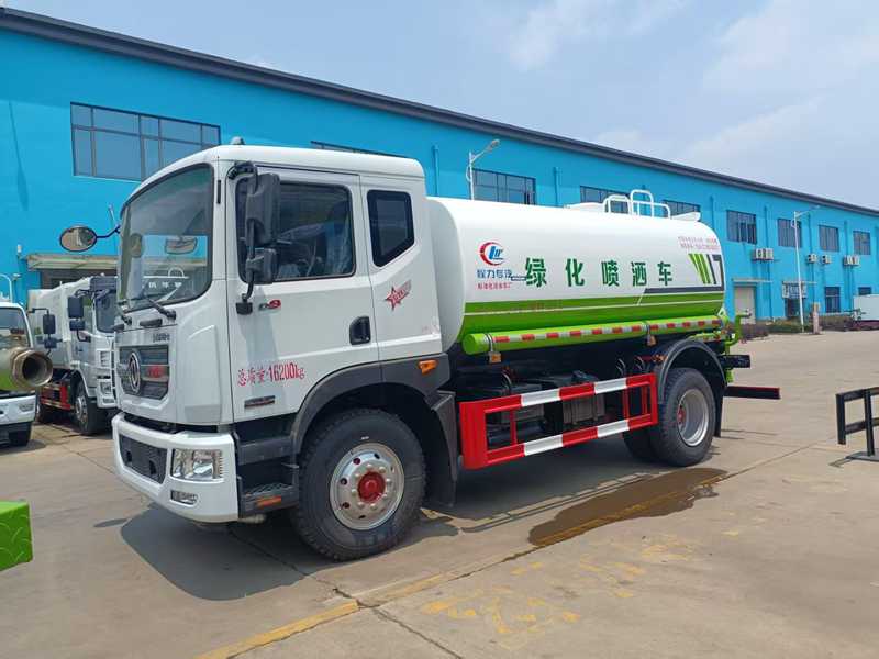12方東風D9灑水車,整車型號:CLW5161GPSDP,采用康明斯230馬力6缸發動機,動力強勁,爬坡有力,罐體實際容積12立方。標配:原裝空調,前沖、后灑、側噴、高位花灑,綠化高炮等。